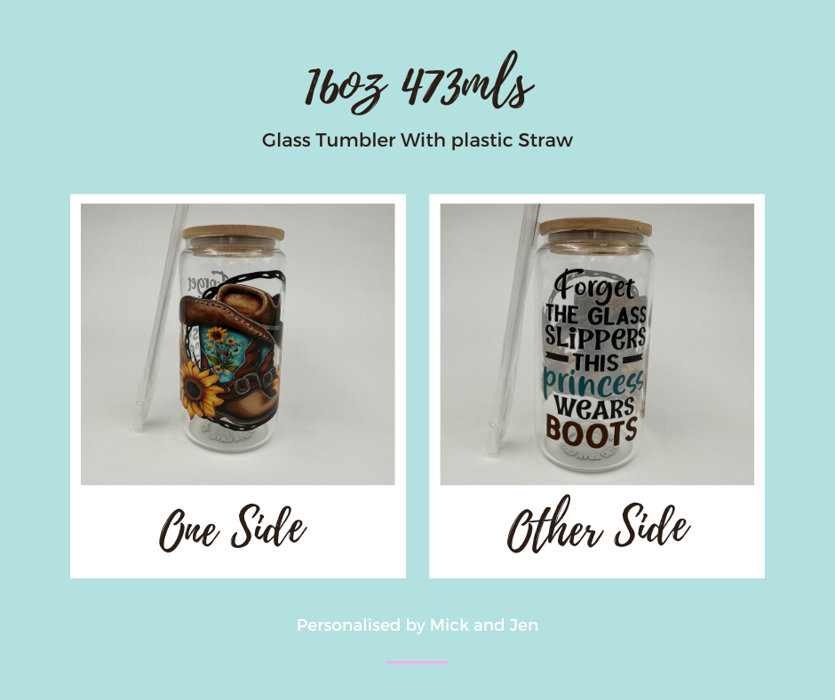 16oz 473mls Princess Boots Glass Tumbler Ready to Ship